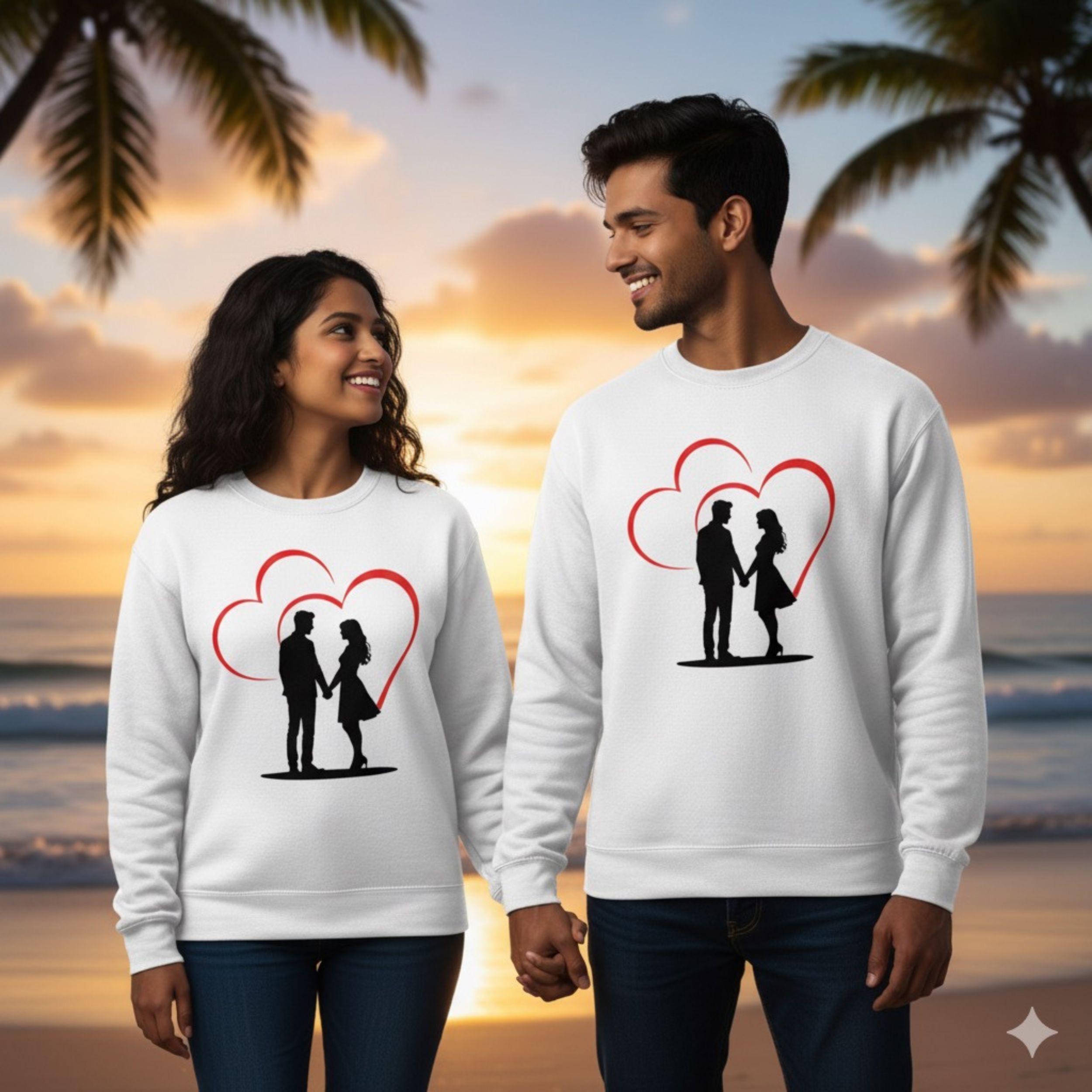 - Romantic couple sweatshirt with love silhouette and hearts
