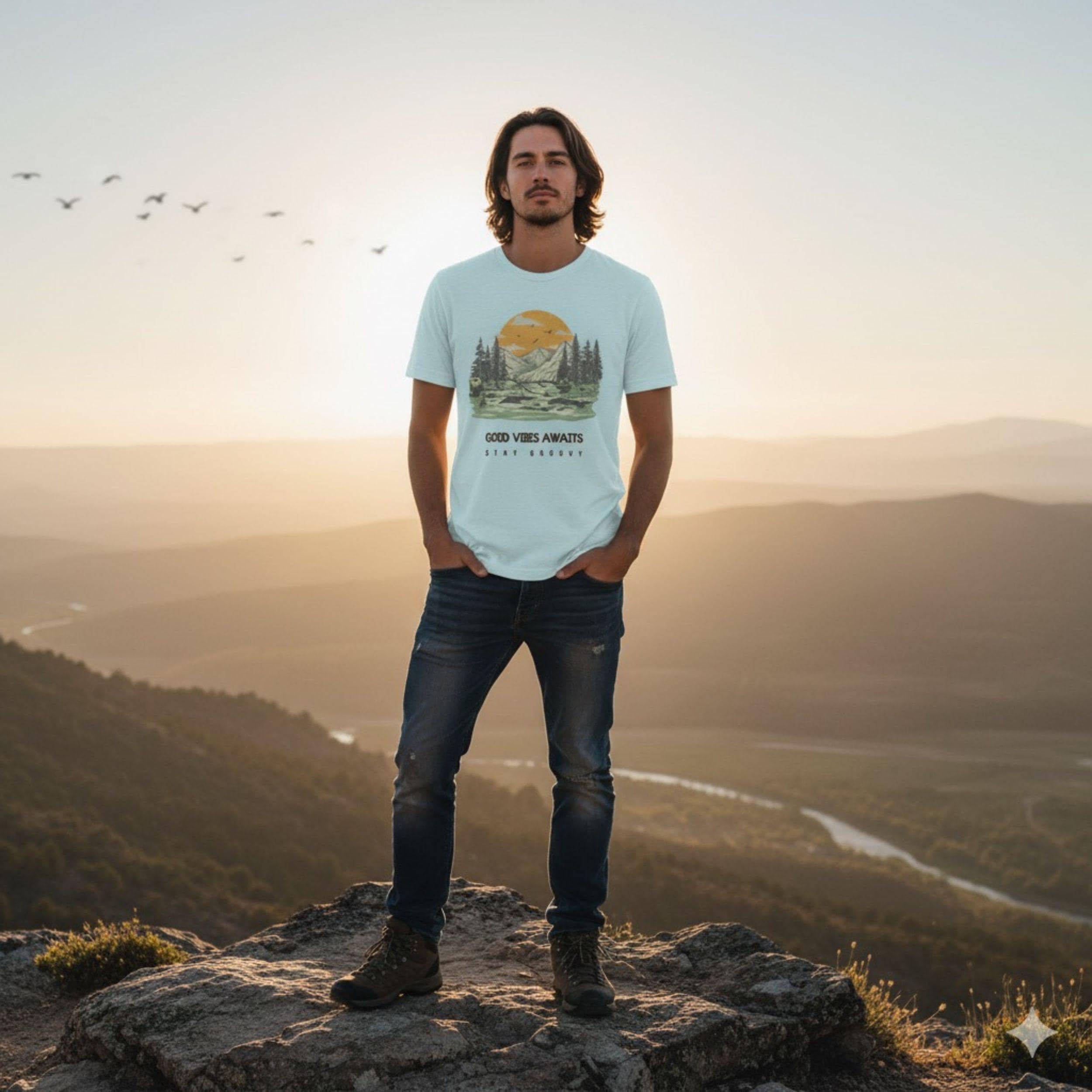 Embrace the outdoors and radiate positive energy with the Good Vibes Awaits T-Shirt. Whether for yourself or as a gift, this shirt is the perfect way to express your love for nature and adventure. Order now and start your journey in style!