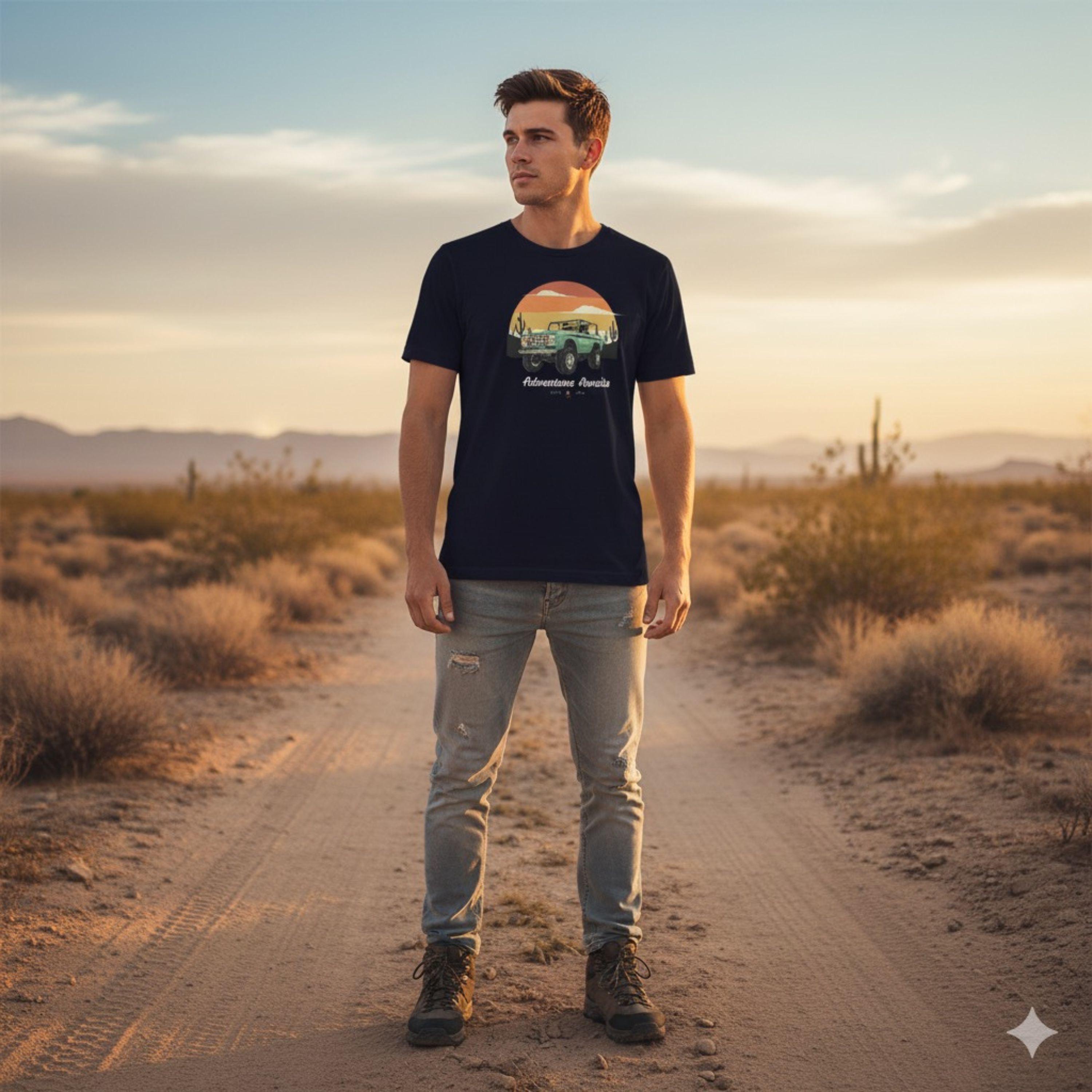 Embrace your love for the great outdoors with the Adventure Awaits T-Shirt — a must-have for wanderers, hikers, campers, and travel enthusiasts alike. Crafted for those who crave exploration and cherish nature, this stylish graphic tee features a captivating mountain landscape, a vintage off-road vehicle, and inspiring "Adventure Awaits" lettering that fuels your wanderlust spirit.