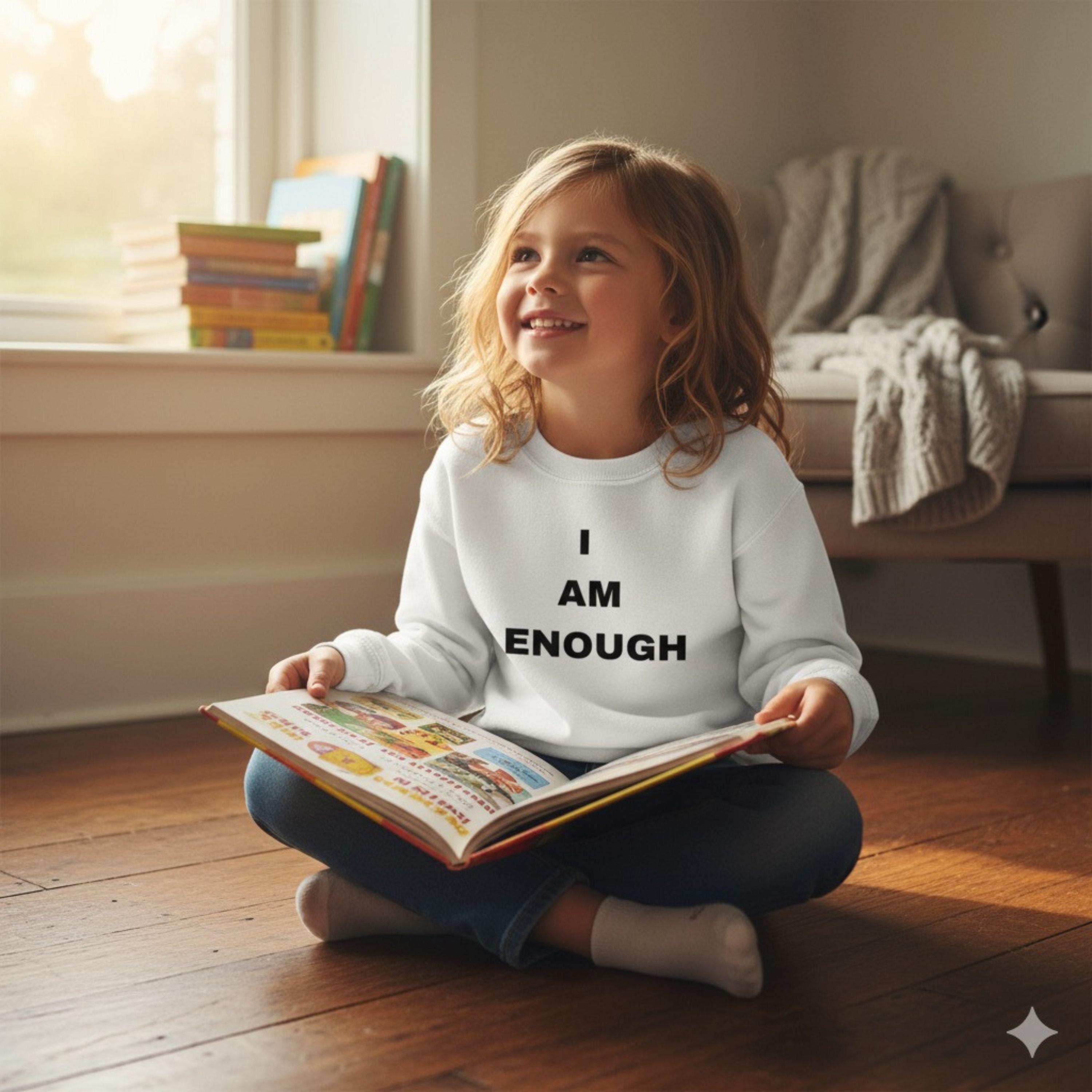 I Am Enough Kids Sweatshirt, Empowerment Kids Clothing, Uplifting Quote Shirt, Self Love Toddler & Youth Pullover, Confident Kid Gift