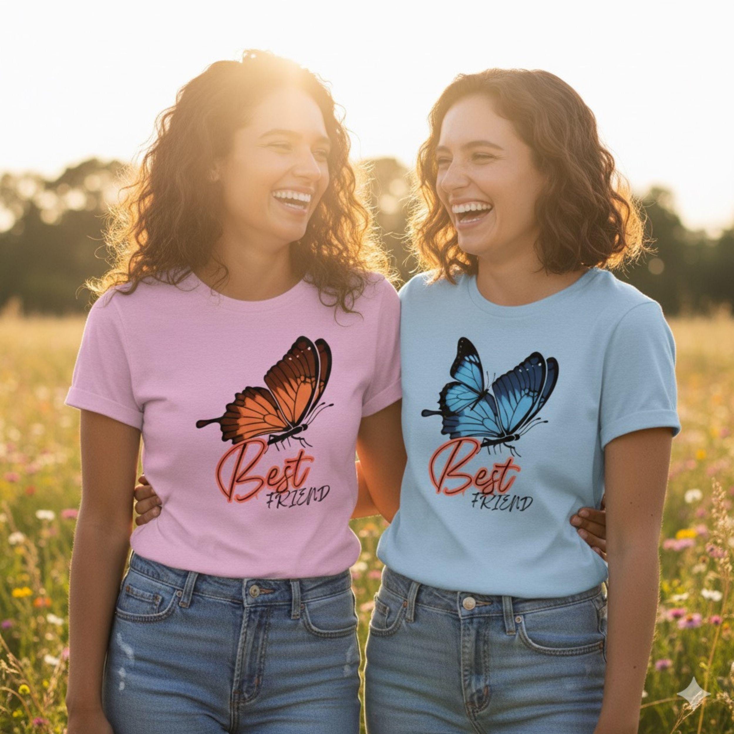 Best Friend Butterfly T-Shirt, BFF Gift Tee, Friendship Graphic Shirt, Cute Matching Shirts, Butterfly Illustration, Gift for Her/Him