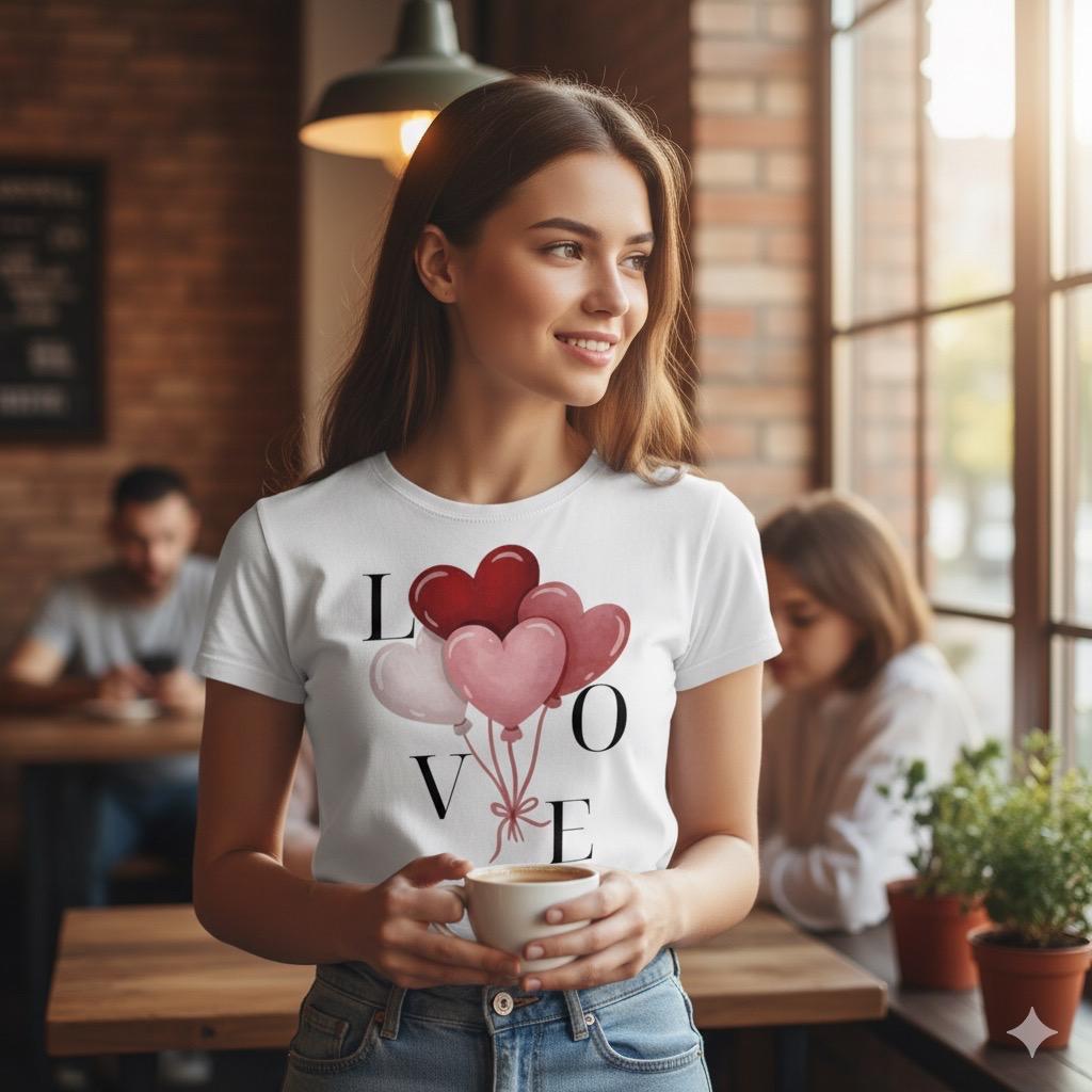 Express your love and playful spirit with our adorable Love Balloon T-Shirt, a perfect blend of minimalism and romantic charm. Featuring a delightful heart-shaped balloon graphic that spells out "LOVE," this cute heart graphic top is designed to lift your mood and showcase your affection in a stylish, effortless way.