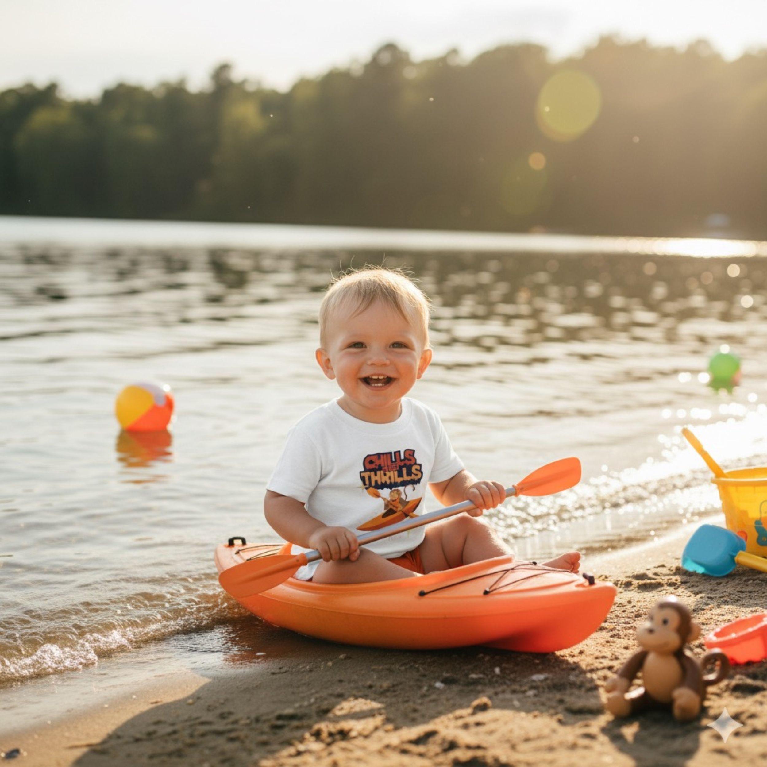 Let your little one enjoy the fun of Chills and Thrills with this cute and comfy toddler t-shirt! Order now to add spooky fun to their wardrobe!