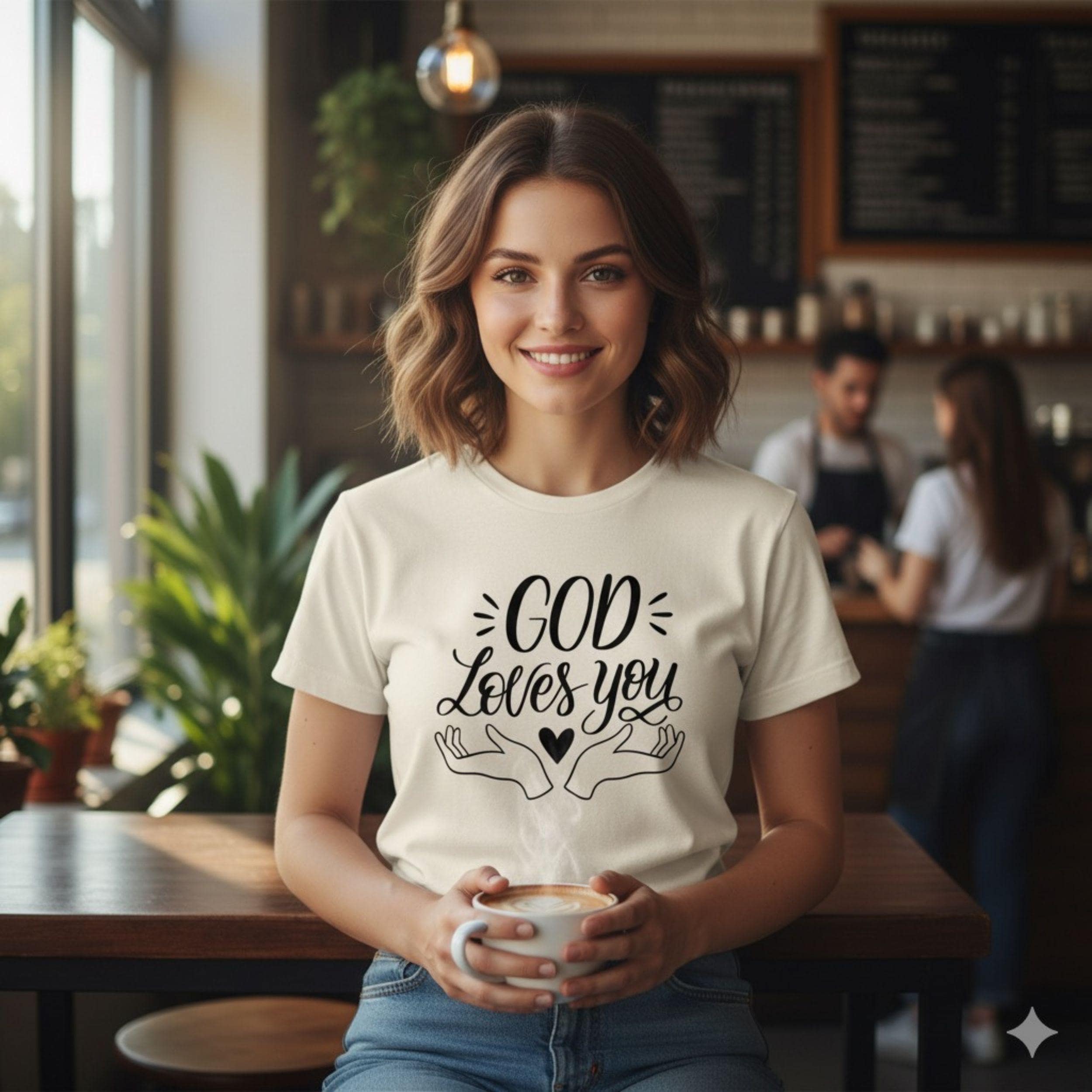 Spread the message of God’s love and grace with the "God Loves You" T-Shirt. Get yours today and share the powerful message of divine love with the world. Wear it proudly and let your faith shine through!