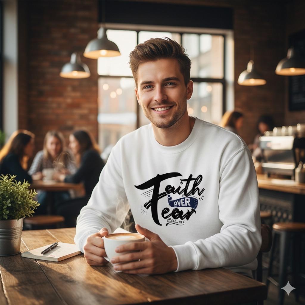 Wear your faith boldly and inspire others with this uplifting Faith Over Fear Sweatshirt — because with God, all things are possible.
