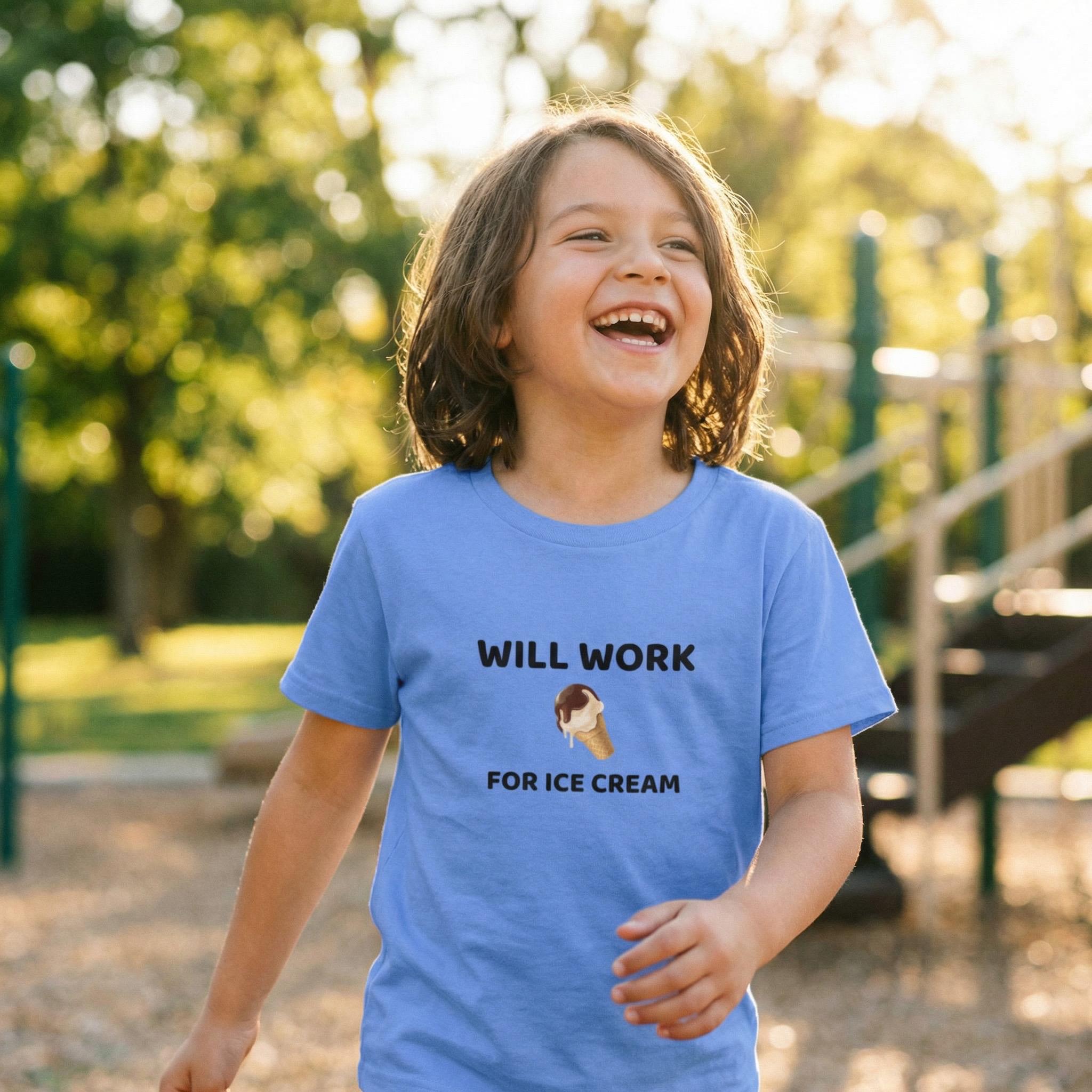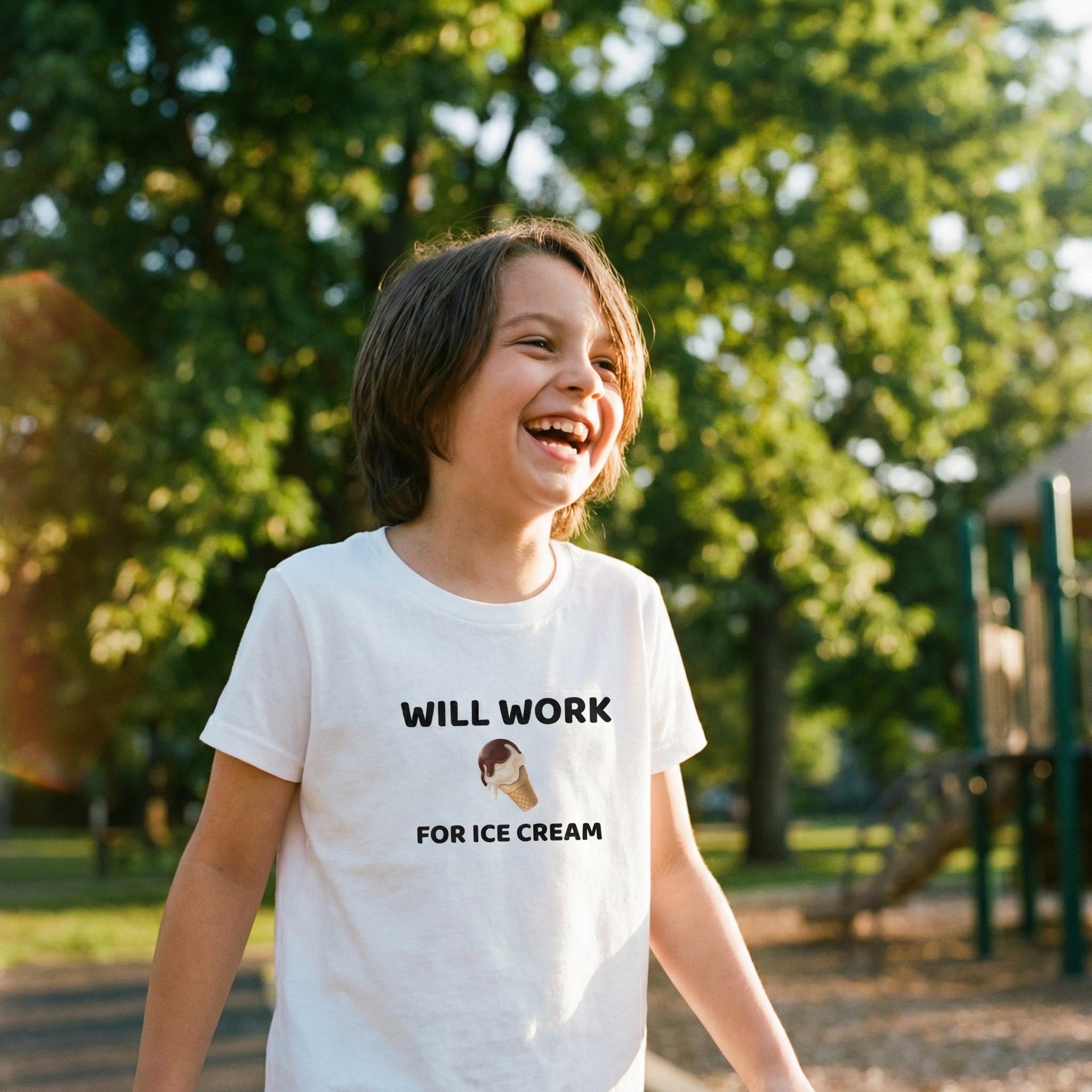 Kids Will Work For Ice Cream T-Shirt - Summer Tee, Kids T Shirt, Unisex Fun Graphic Casual Outfit