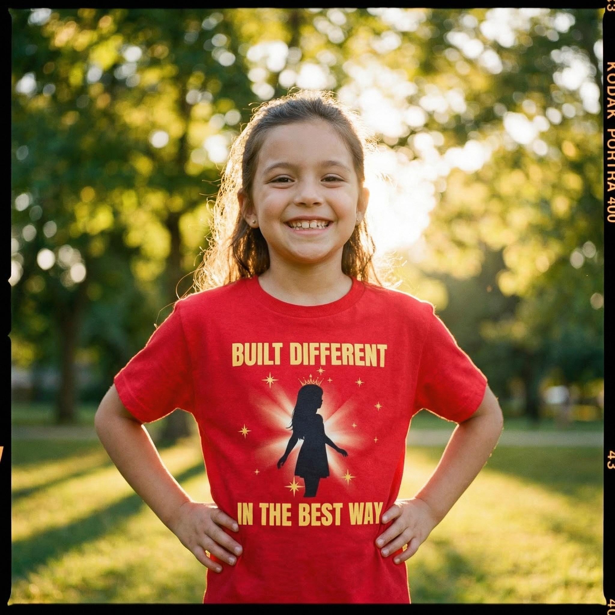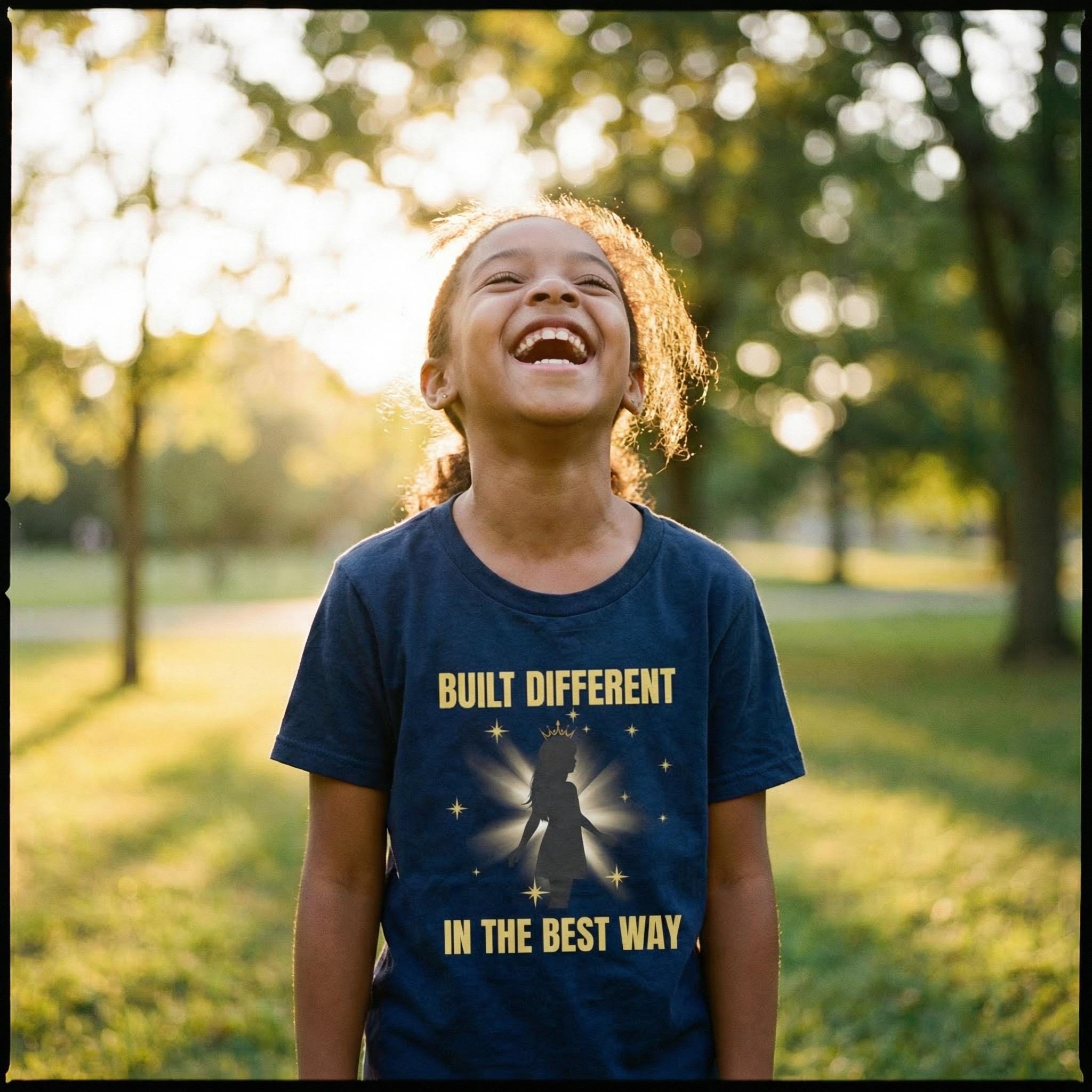 Kids Graphic T-Shirt “Built Different” - Youth Unisex Confidence Tee for Girls