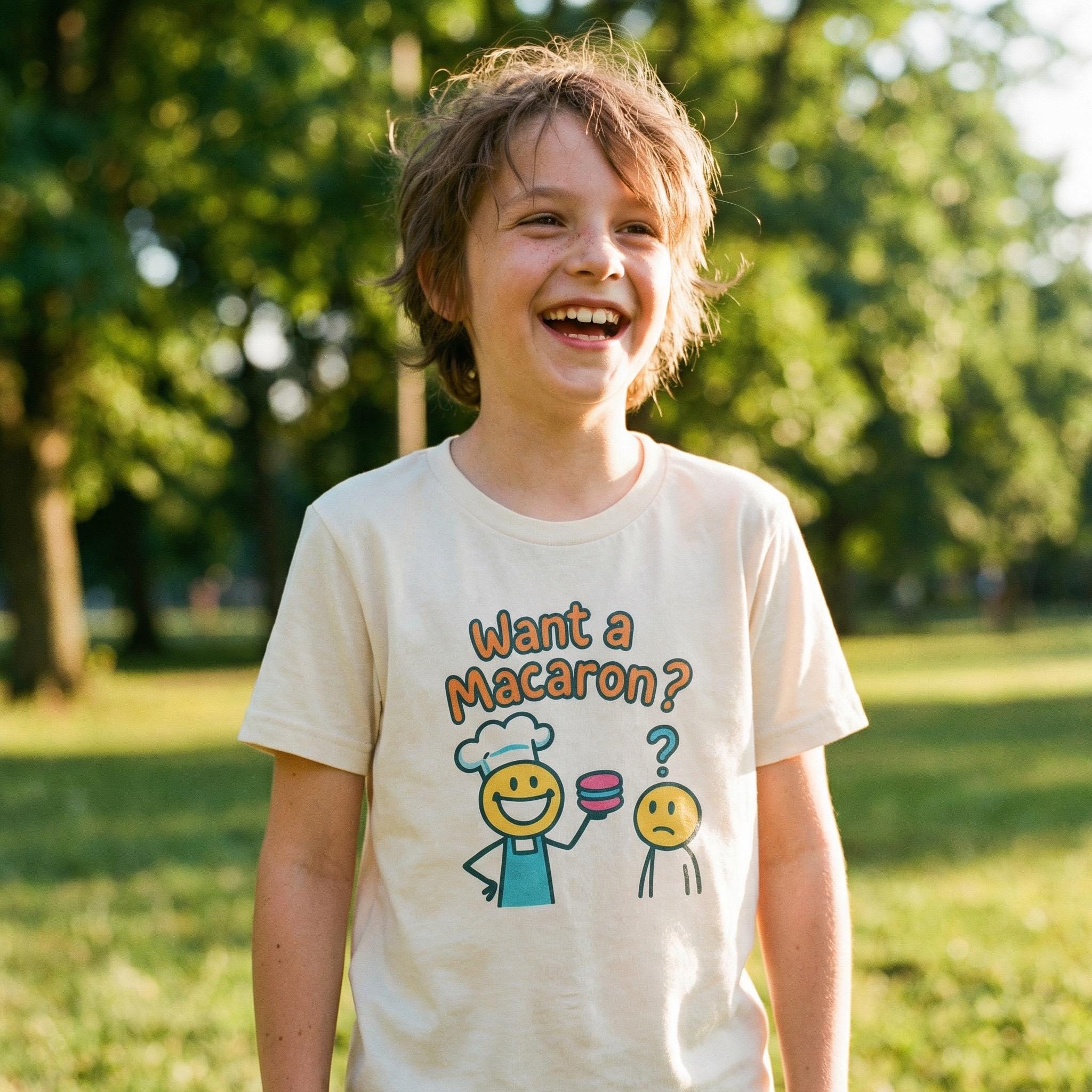Kids Want a Macaron Meme T-Shirt - Funny Food Joke Tee, Unisex Kids, T Shirt Fun Print Casual Tee Gift