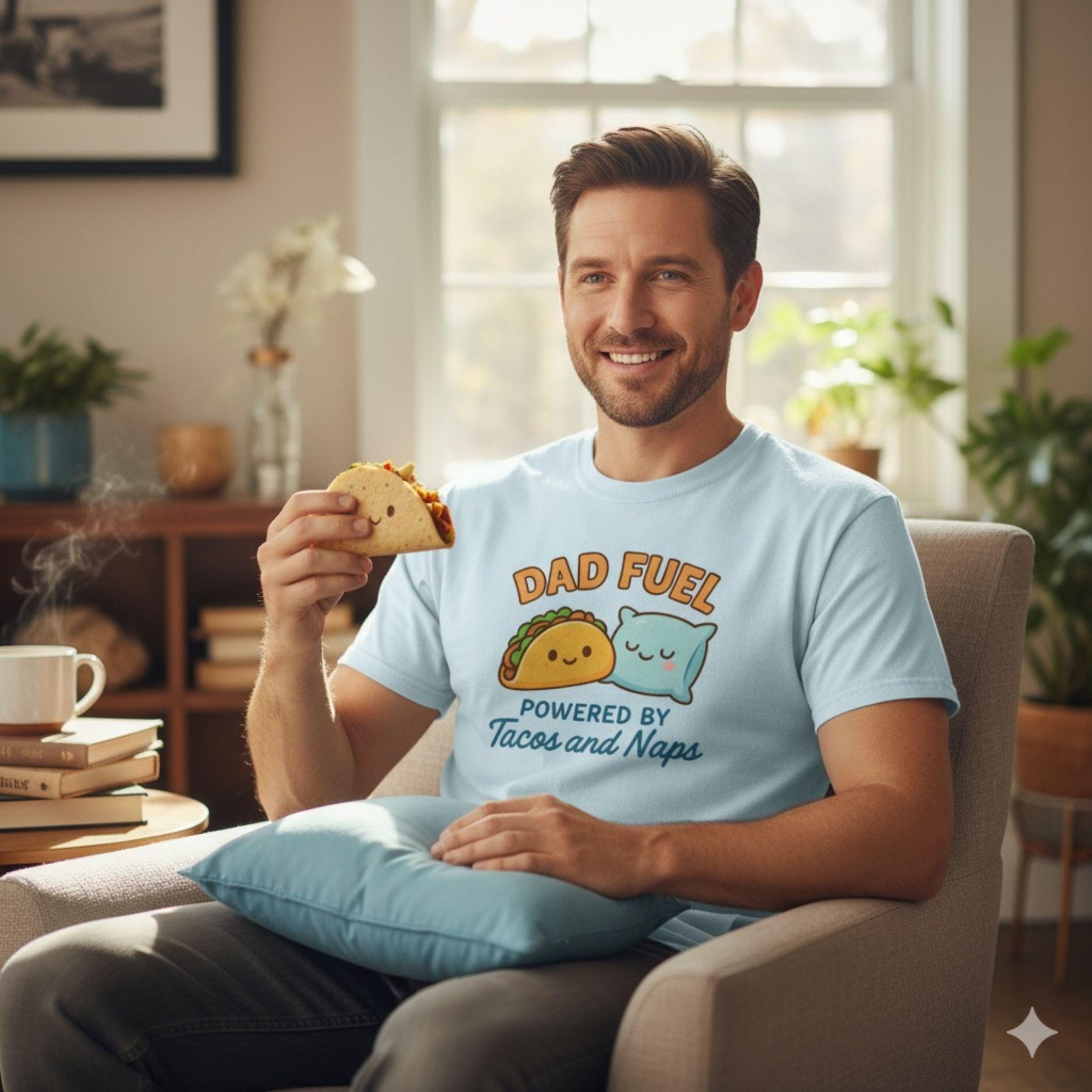 “Dad Fuel: Tacos and Naps” graphic for dads with humor