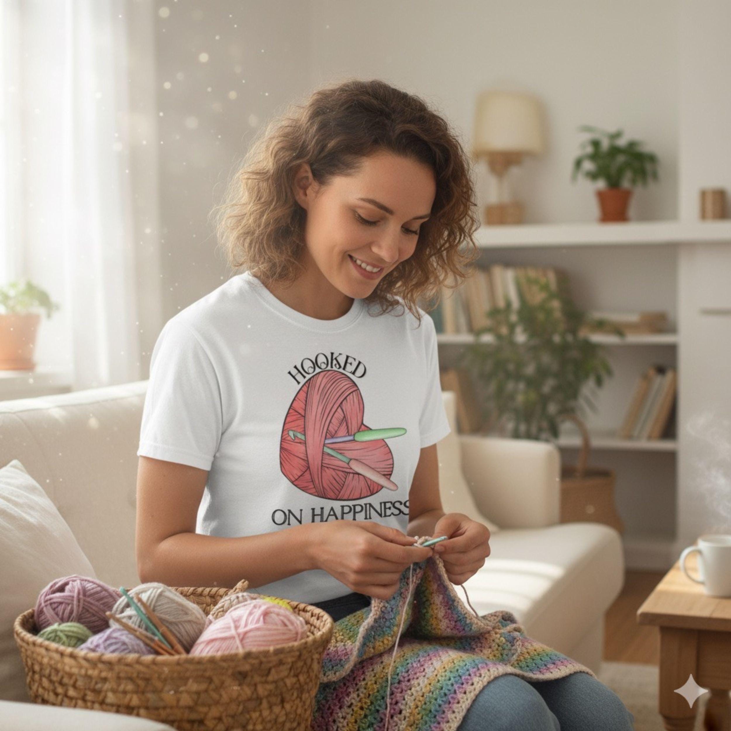 Stay Hooked on Happiness and share the feel-good vibes wherever you go with this Custom Comfort Colors Graphic Tee, your go-to for comfort, style, and positivity.