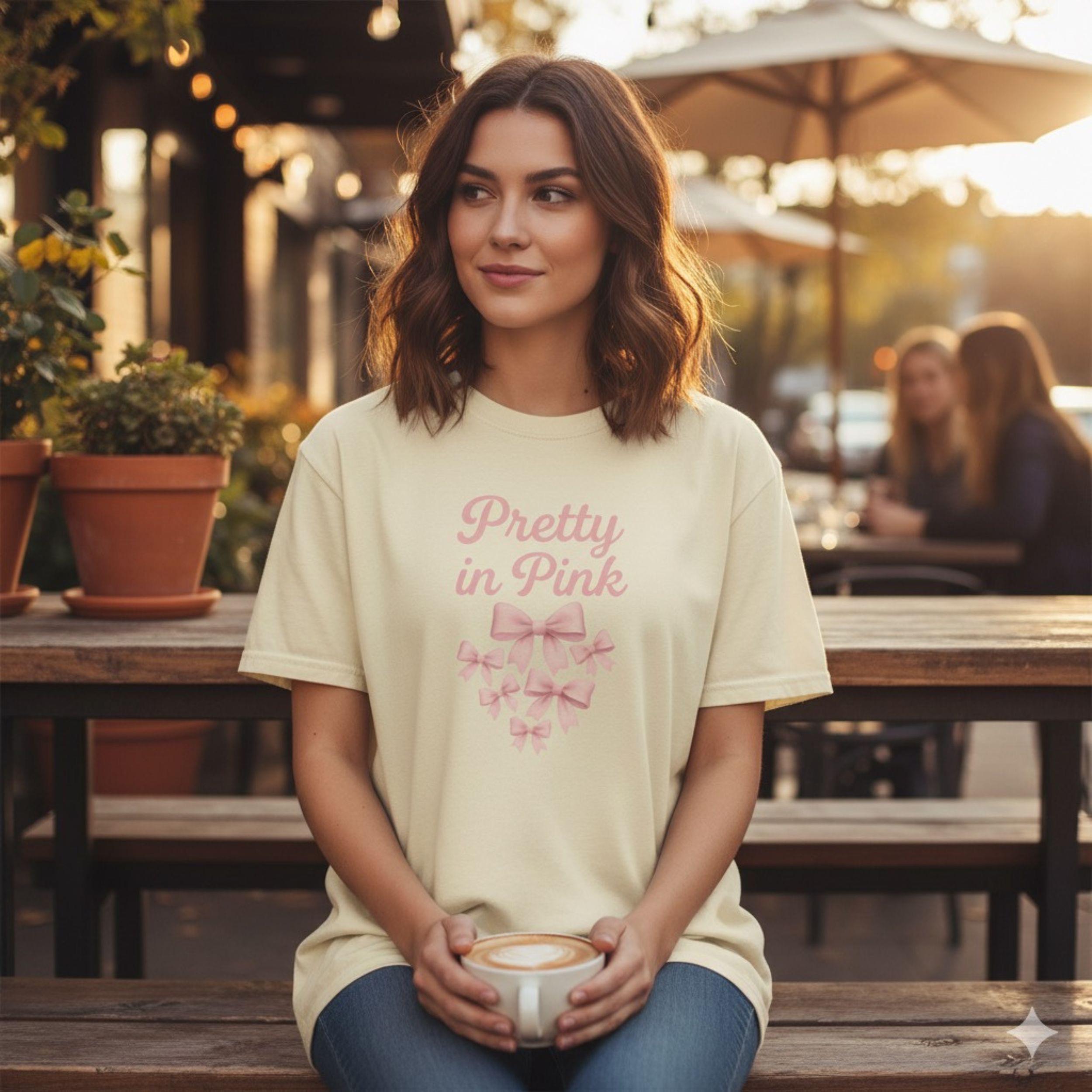 Custom Pretty in Pink Coquette Bow T-Shirt, Soft Girl Aesthetic Tee, Kawaii Pink Bow Graphic Shirt, Gift for Her, Trendy Girly Style Top