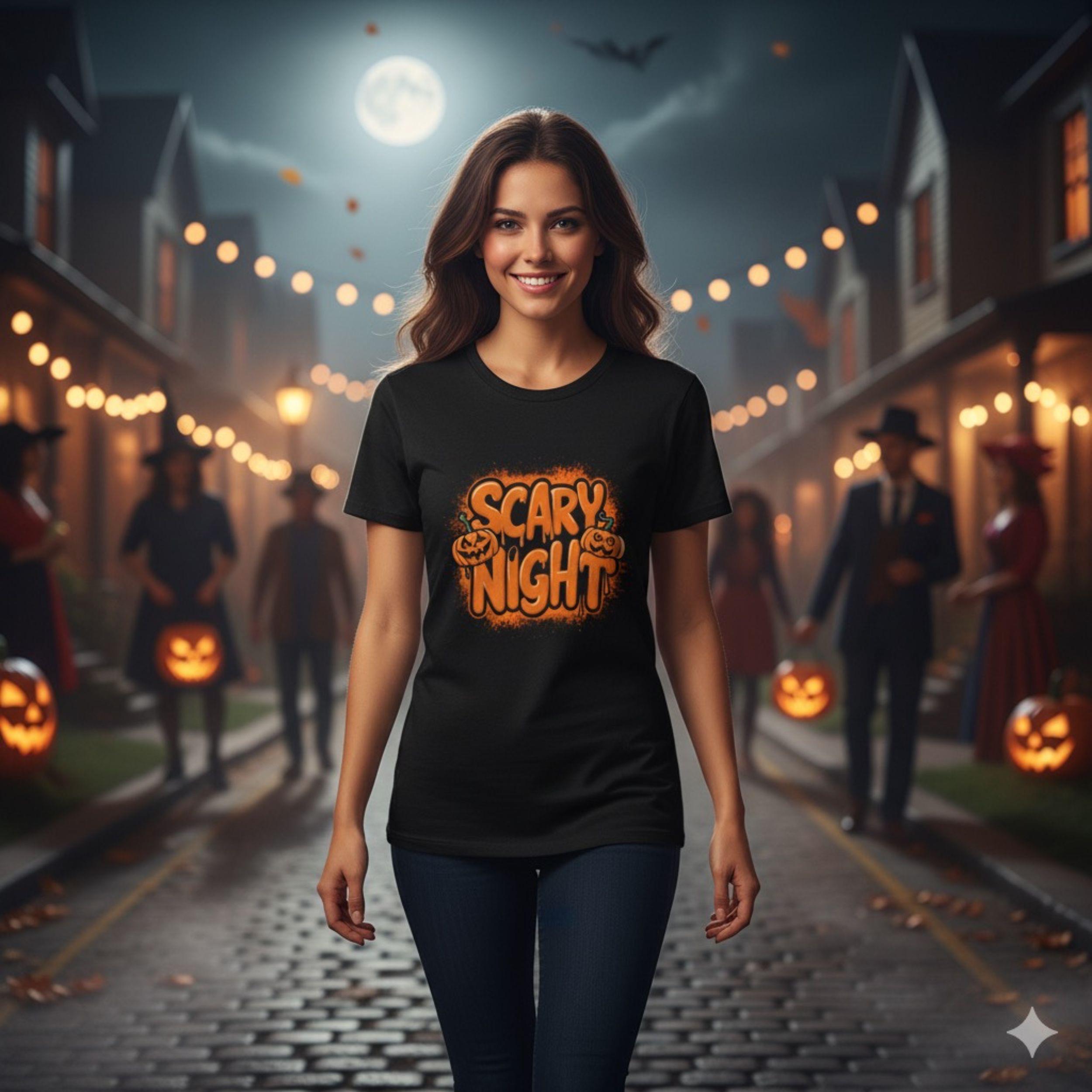 🕷️🎃🌑 Custom Halloween Scary Night T-Shirt | Personalized Creepy Costume Apparel | Unisex Spooky Season Tee