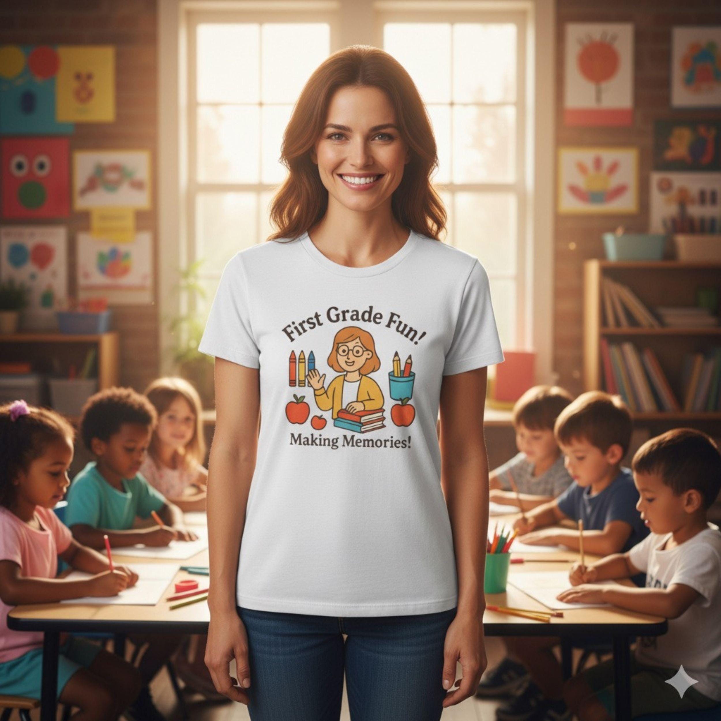 A classic unisex T-shirt designed for first grade teachers, perfect for daily wear or casual Fridays at school. The soft and durable fabric ensures comfort and style all year round. Ideal for educators who want to showcase their profession with pride. Great for back to school shopping, teacher appreciation week, or as a thoughtful gift for a teacher.