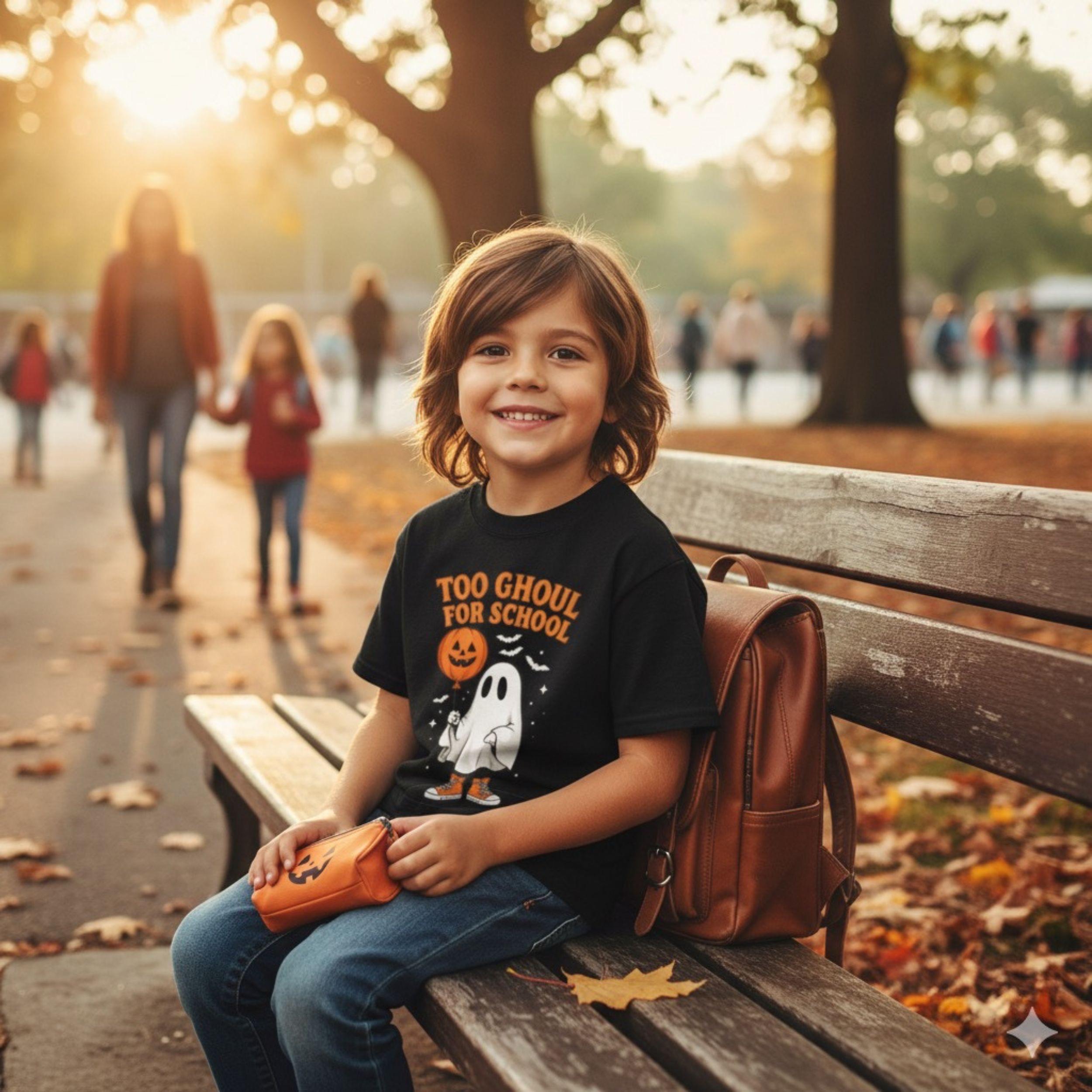 Kids Halloween Cotton T-Shirt XS-XL | Ghost Graphic, Too Ghoul for School, Spooky Kids Costume Top, Halloween Tee for Kids