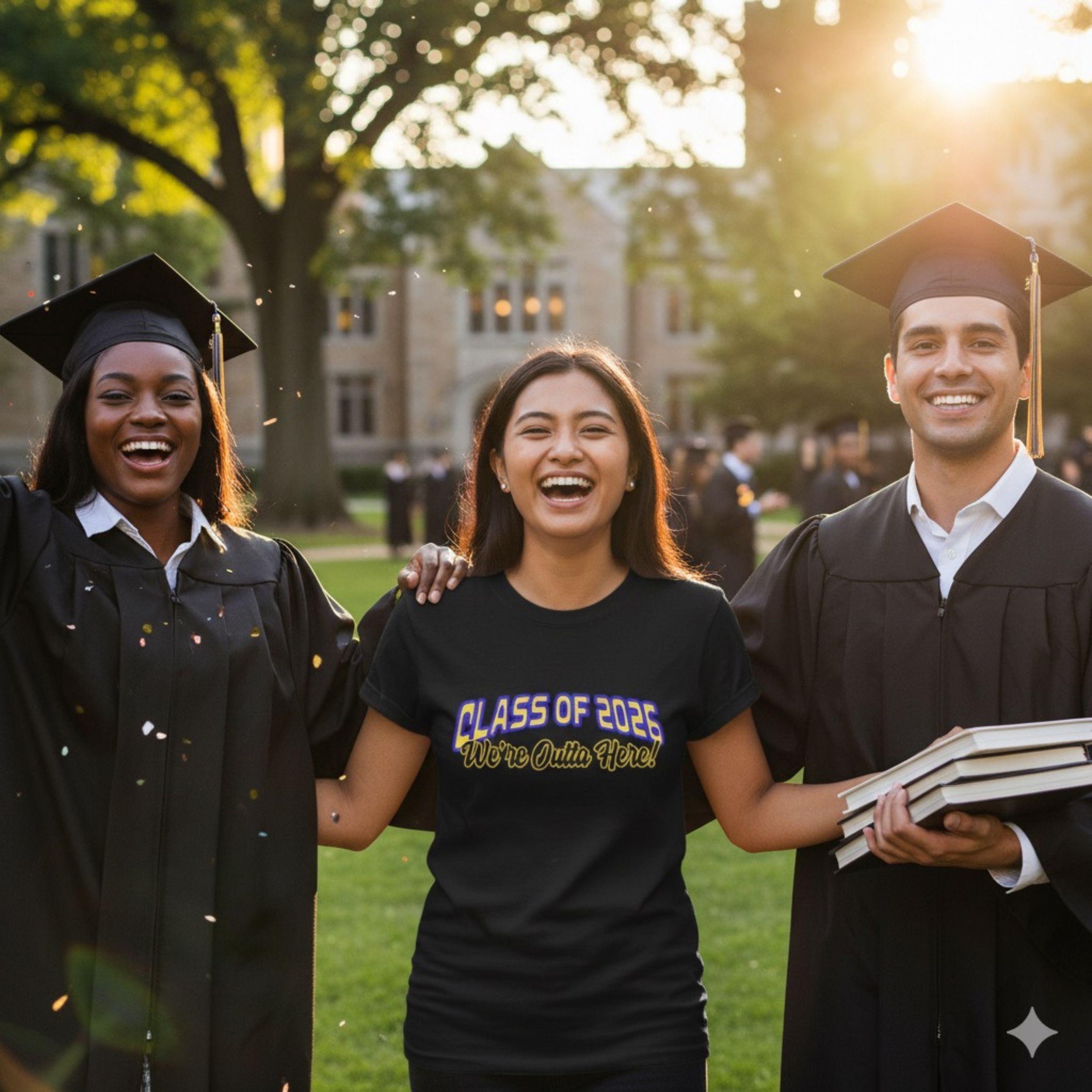 Personalized Class of 2026 Were Outta Here T-Shirt, Graduation Tee, Unisex Class Shirt, Senior Gift, Graduation Ceremony, School Spirit Wear