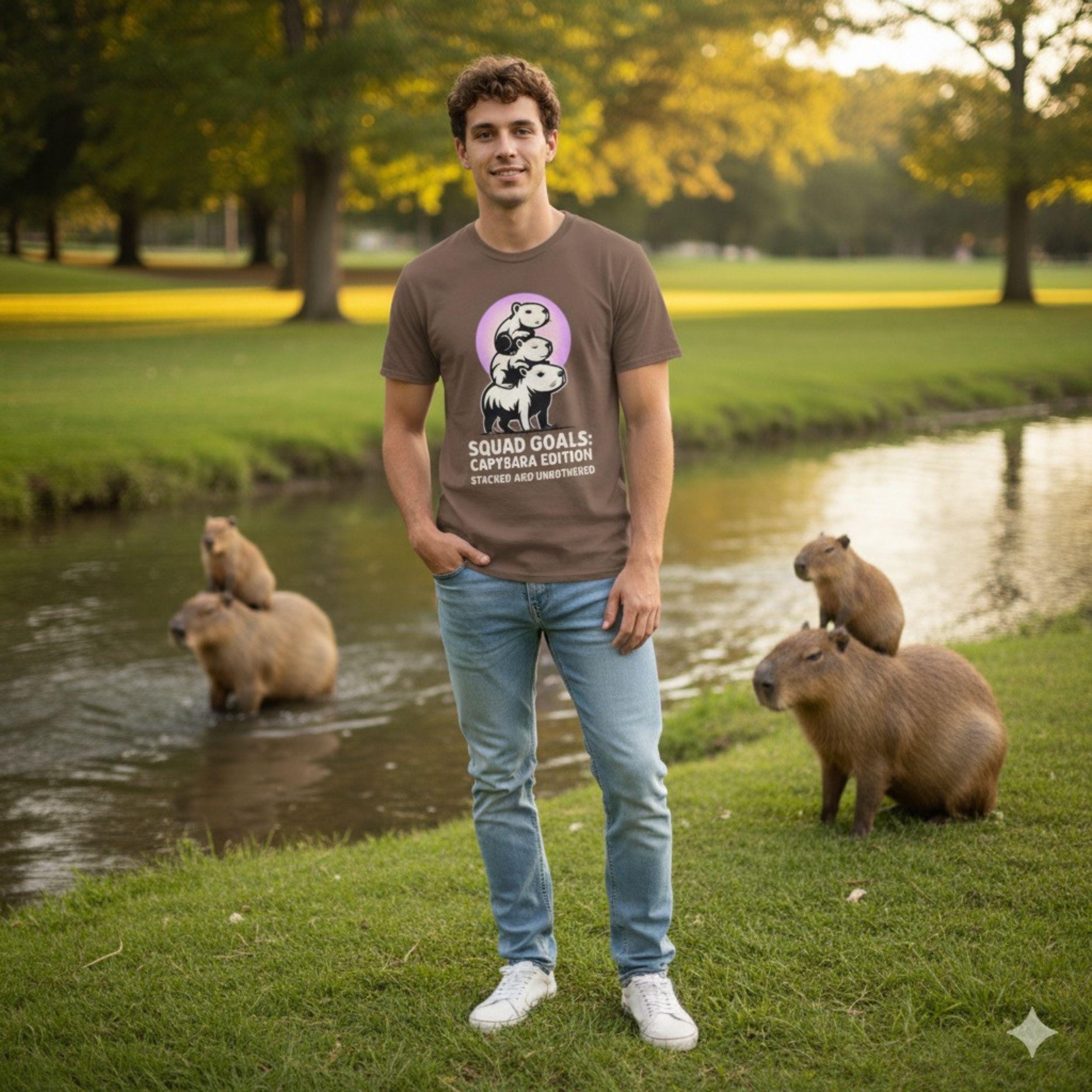 Express your love for wildlife and embrace the relaxed, squad goals lifestyle with this fun, eye-catching capybara shirt. It also makes a fantastic gift for nature lovers, animal enthusiasts, or anyone who enjoys a good meme. Add this adorable, humorous top to your wardrobe today and showcase your chill, animal-loving spirit!