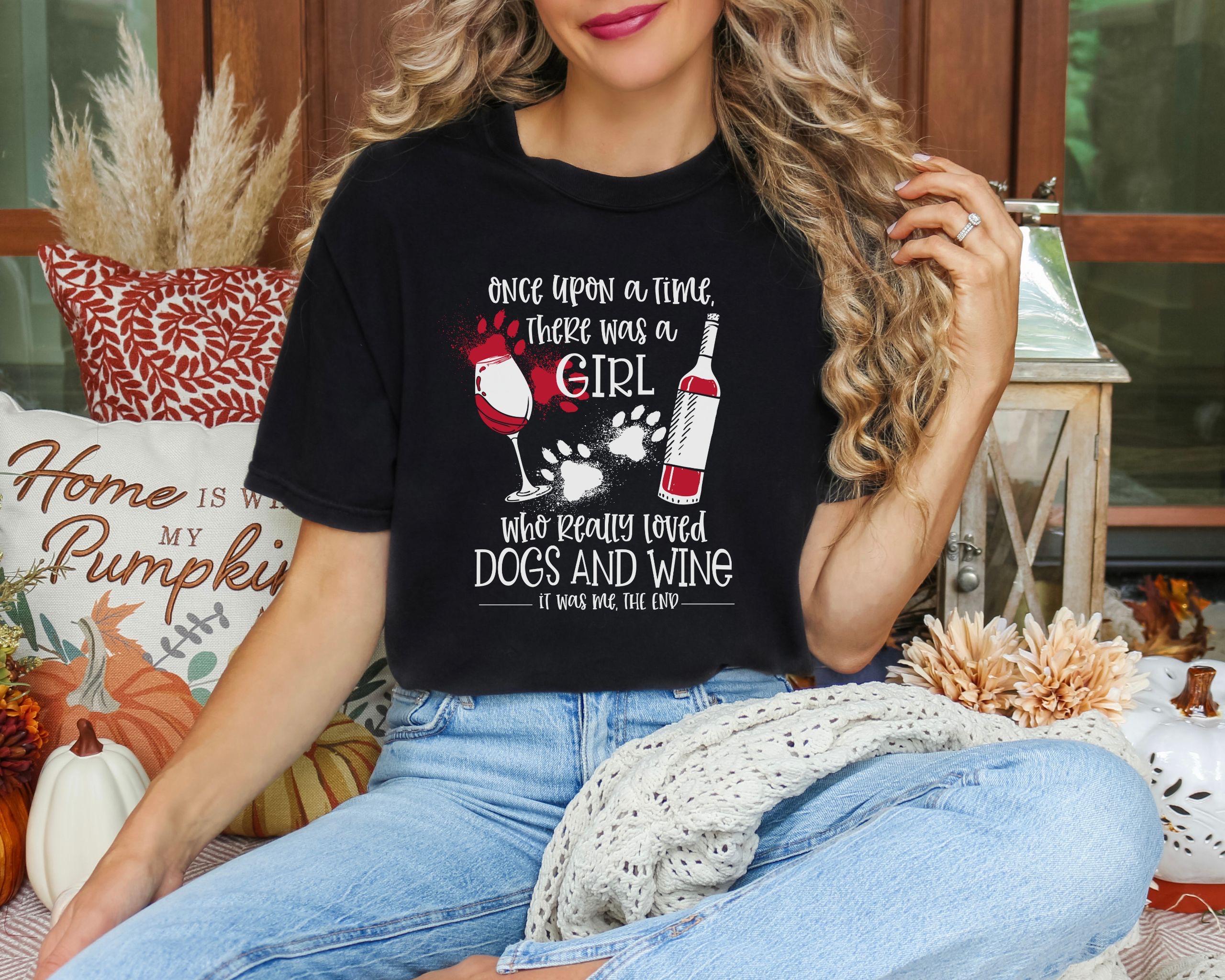 Dog and Wine Lover T-shirt S-4XL, Graphic Pet Owner Casual Tee for Dog Moms and Wine Enthusiasts, Wine Dog Shirt, Gift For Her