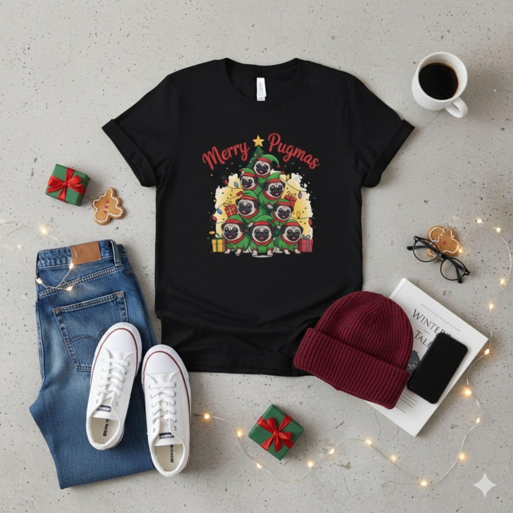 This Pug Christmas Tree T-Shirt exudes a festive and cheerful vibe, perfect for the holiday season. It is comfortable, versatile, and can be worn by adults for casual or semi-formal occasions. Ideal for those who love pugs and want to add a touch of holiday spirit to their wardrobe. Suitable for Christmas celebrations and parties.