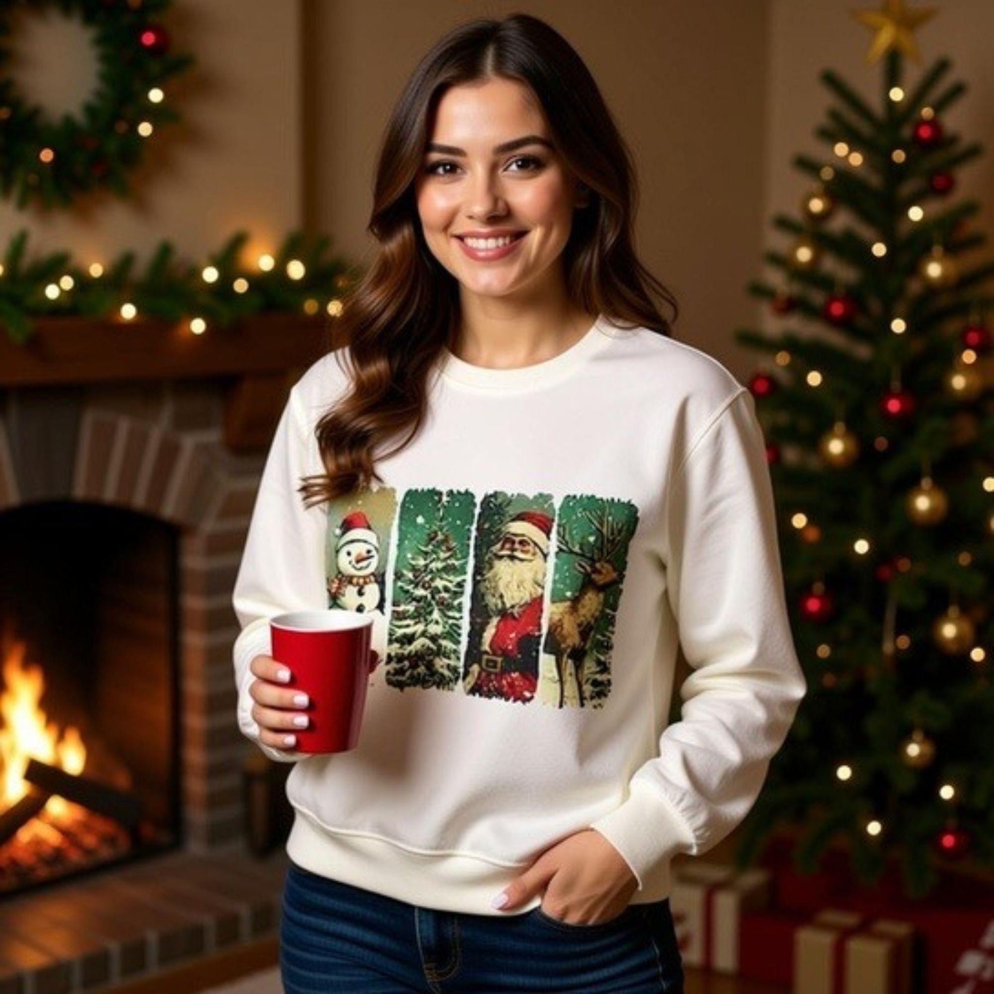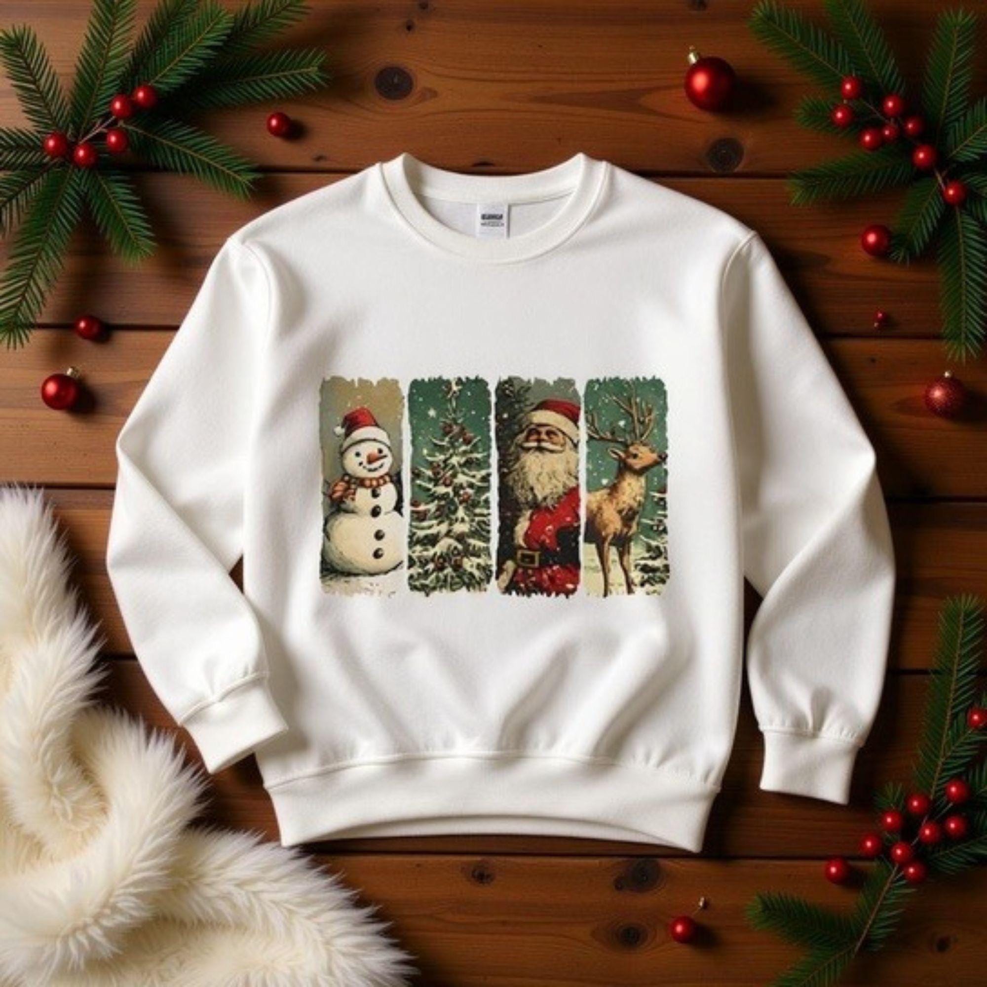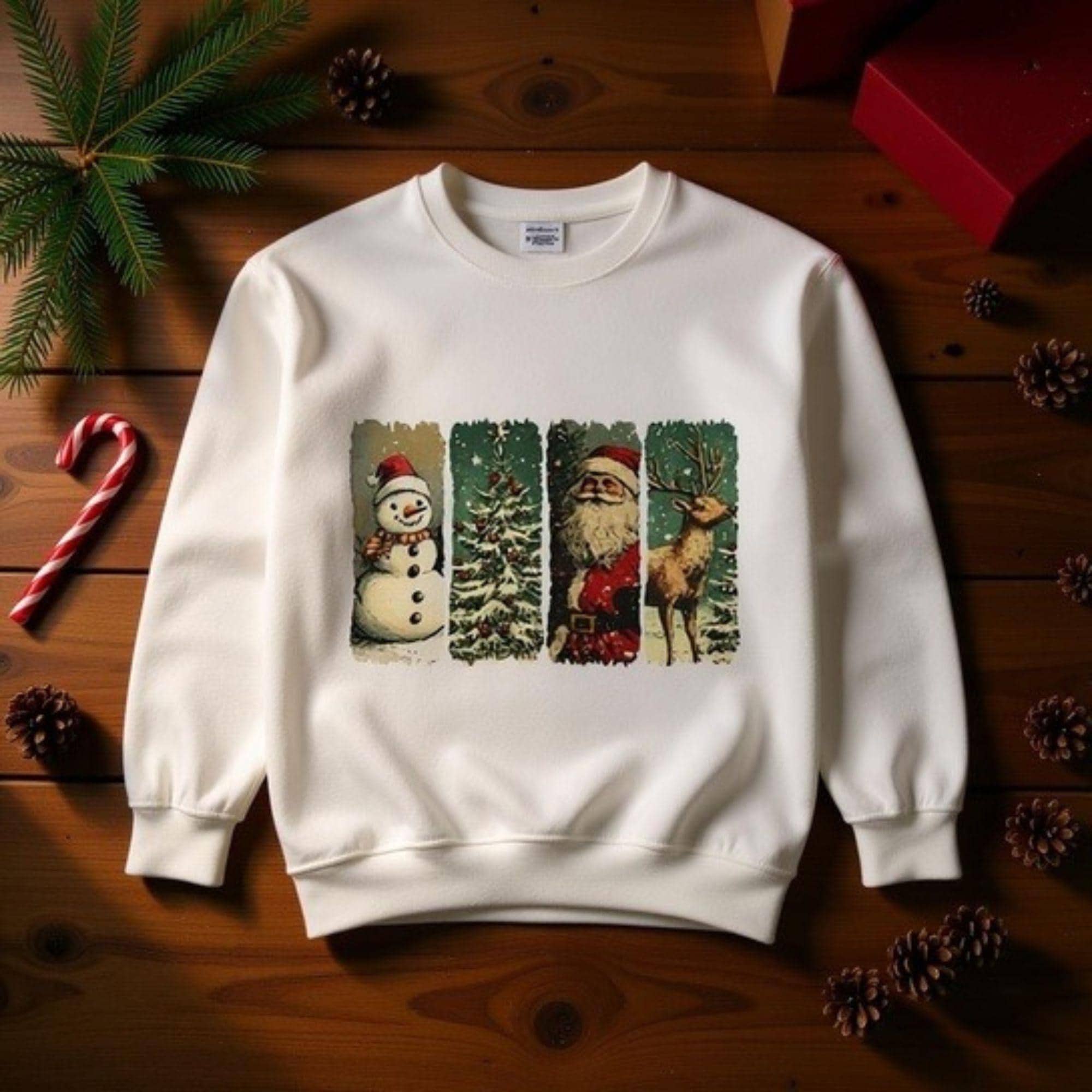 Vintage Christmas Brushstrokes Sweatshirt, Holiday Jumper, Festive Pullover, Winter Season Apparel, Xmas Sweater