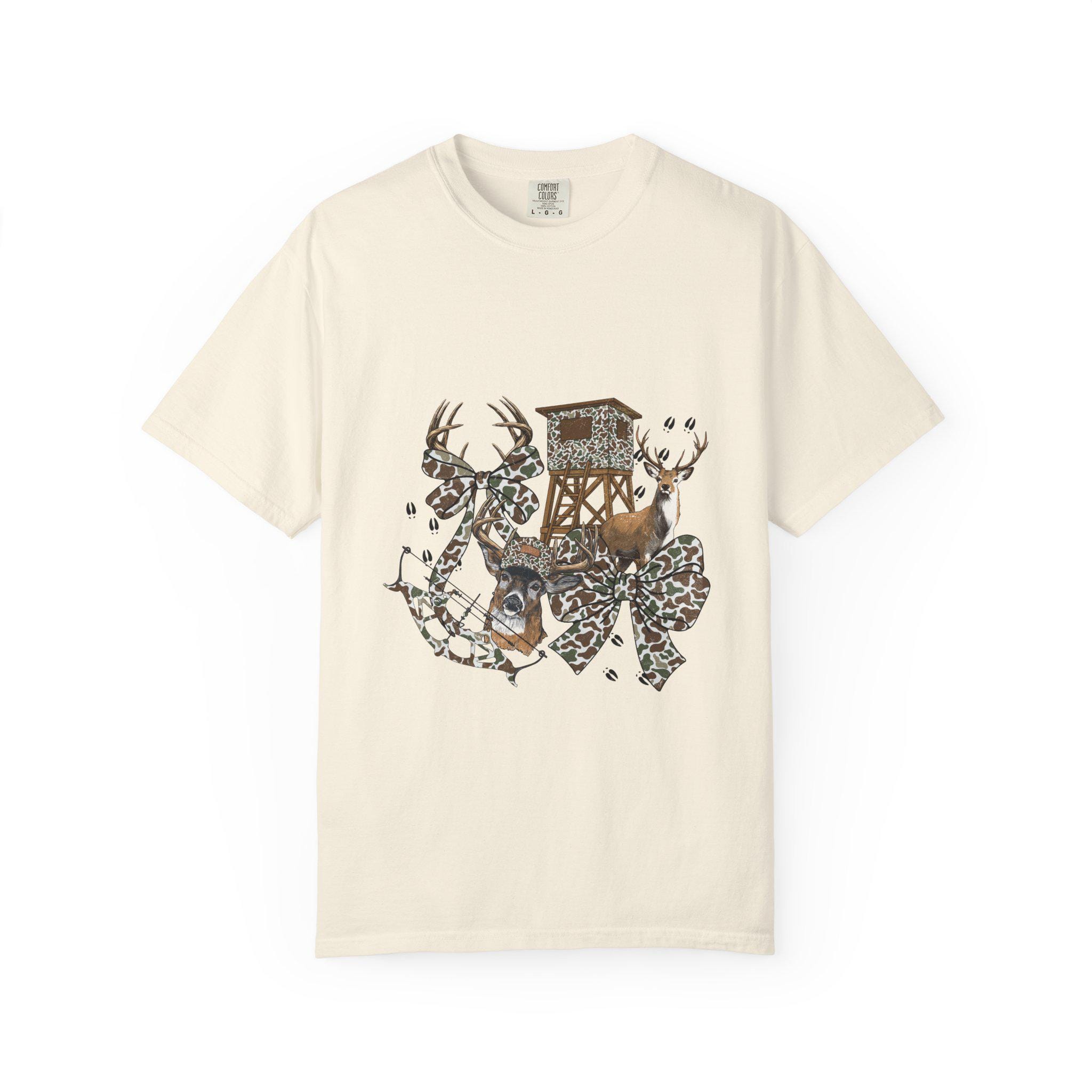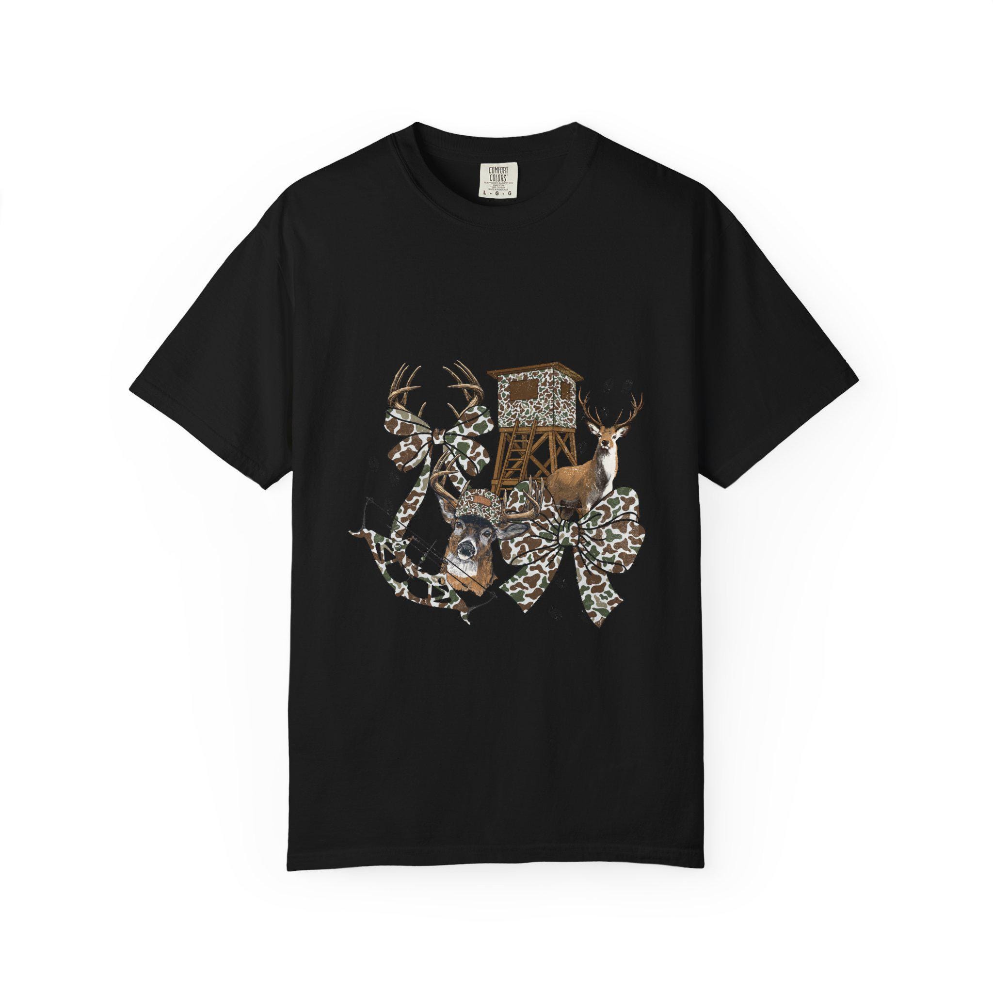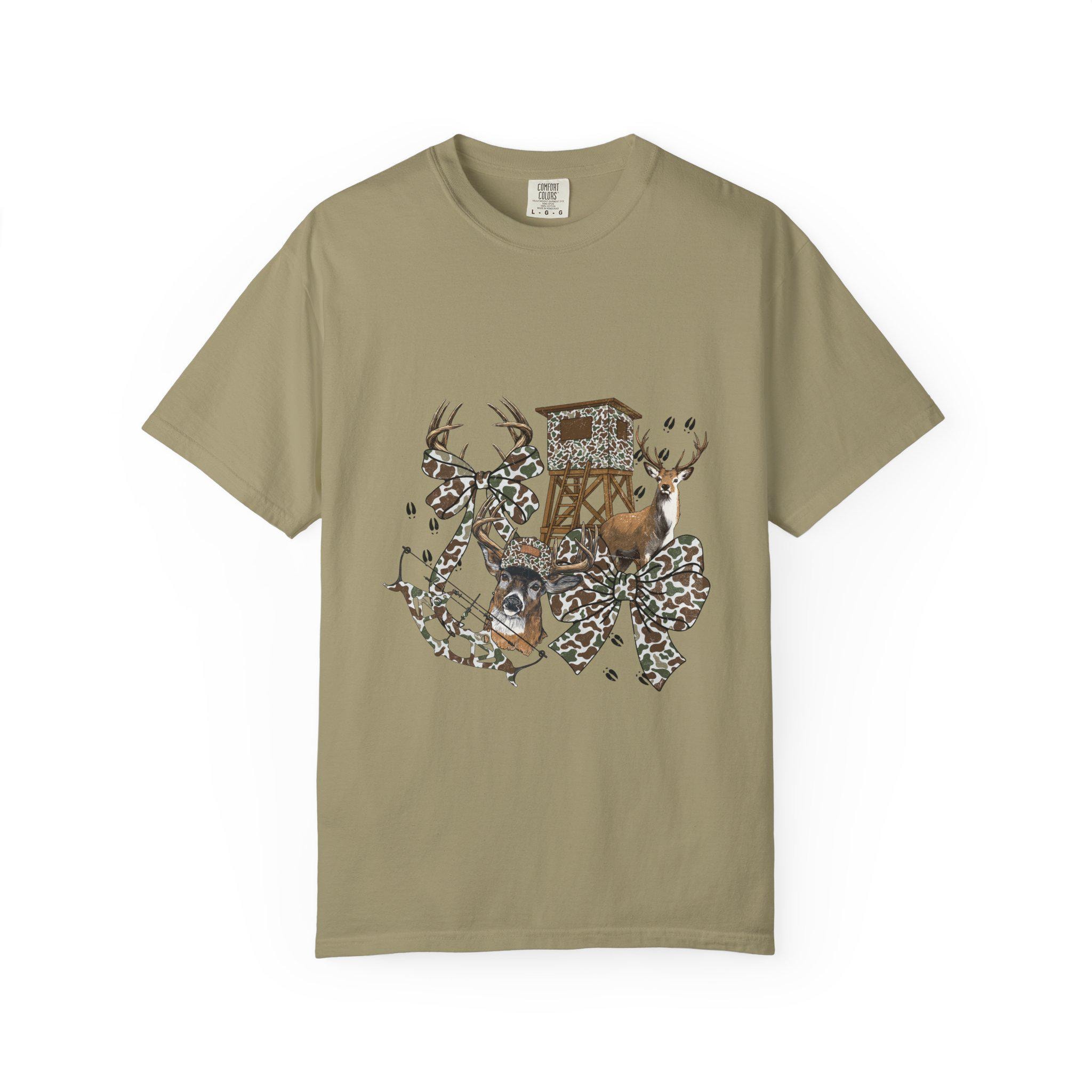 A comfortable and versatile unisex garment-dyed T-shirt featuring a unique Deer Hunting Collage design. Perfect for outdoor enthusiasts and hunters. This T-shirt is ideal for casual wear, hunting trips, and outdoor activities.