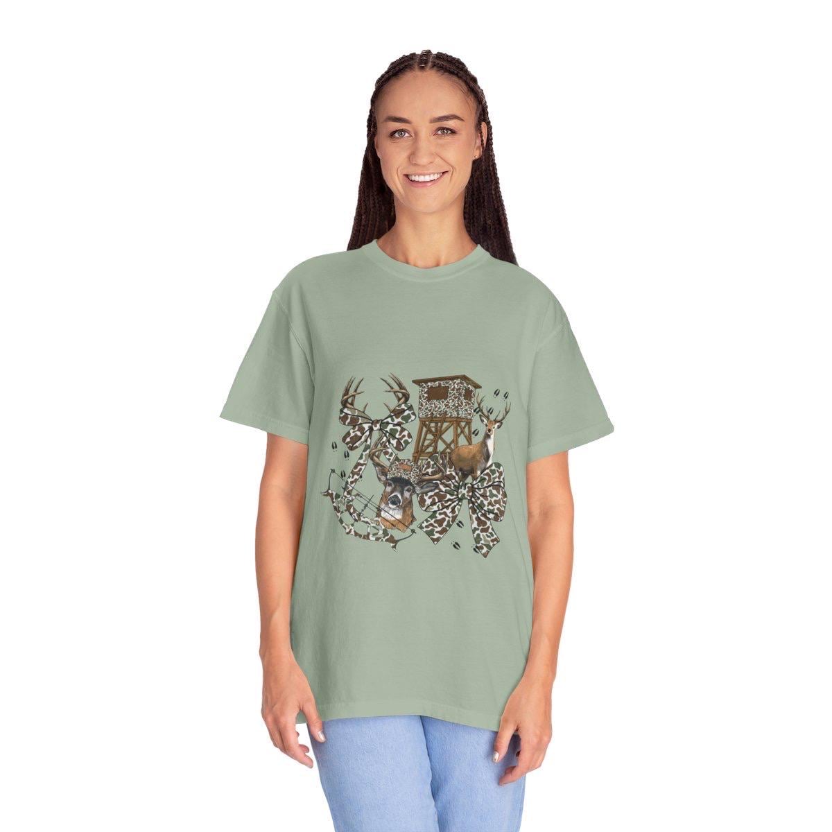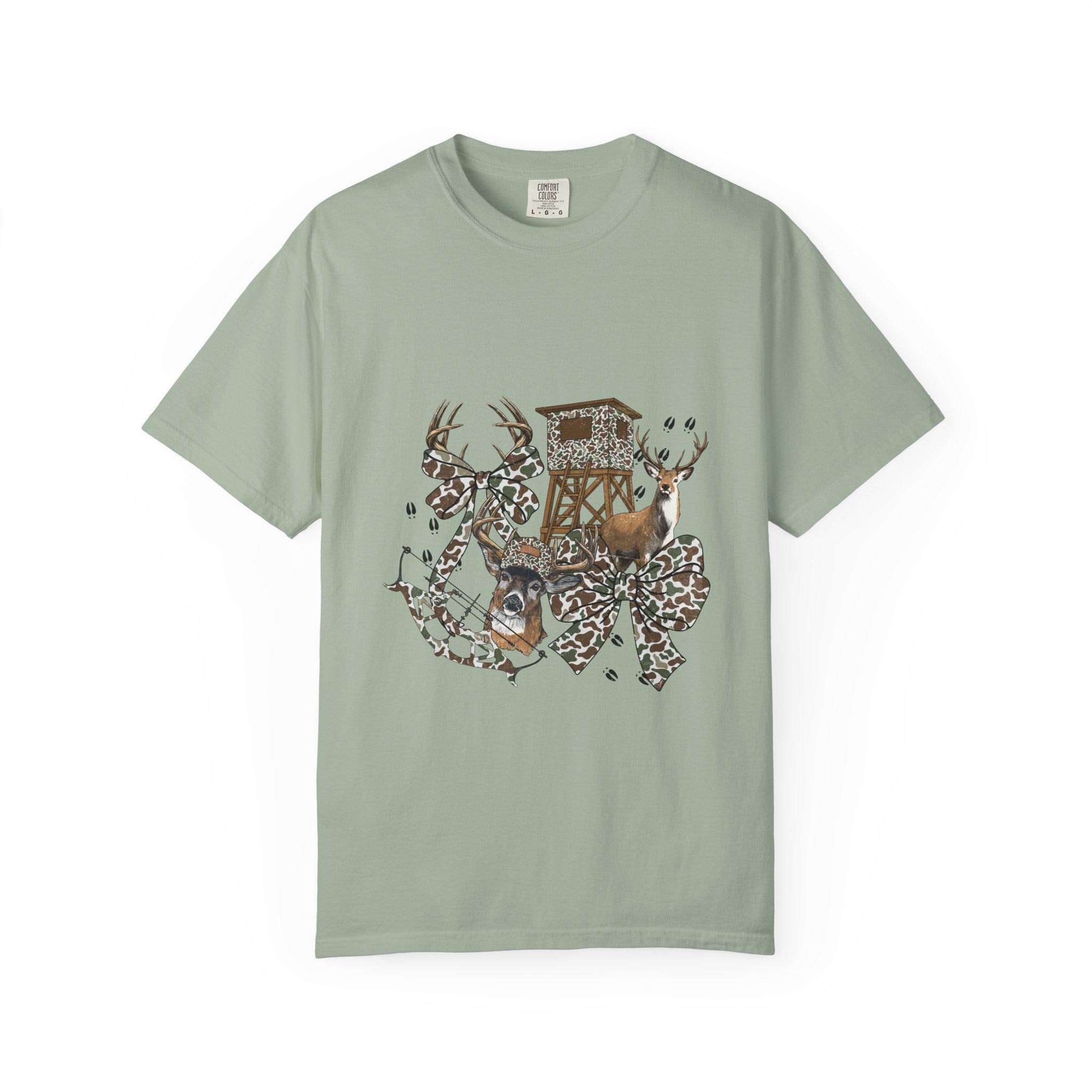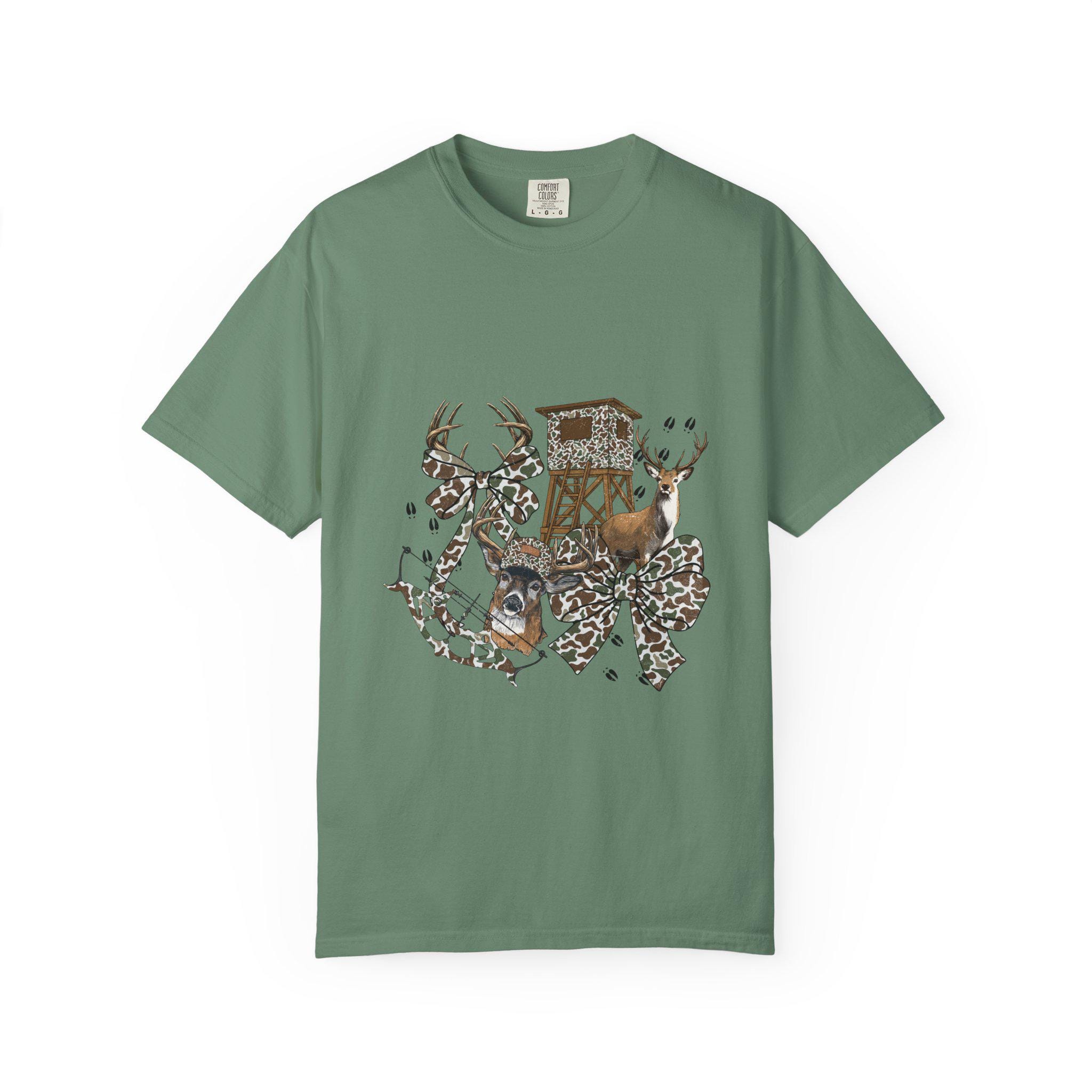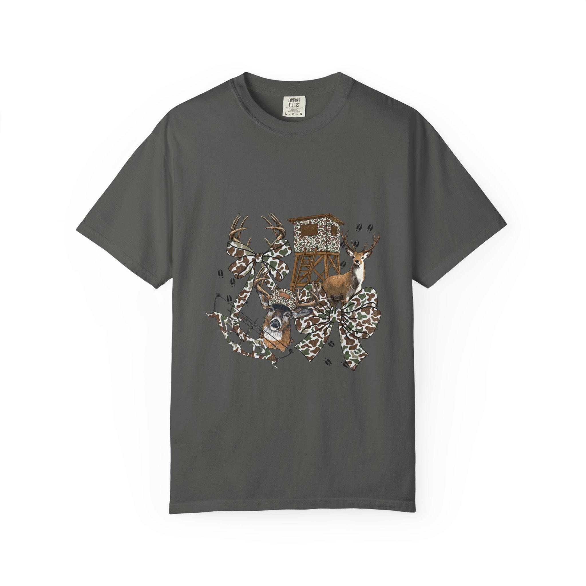 A comfortable and versatile unisex garment-dyed T-shirt featuring a unique Deer Hunting Collage design. Perfect for outdoor enthusiasts and hunters. This T-shirt is ideal for casual wear, hunting trips, and outdoor activities.